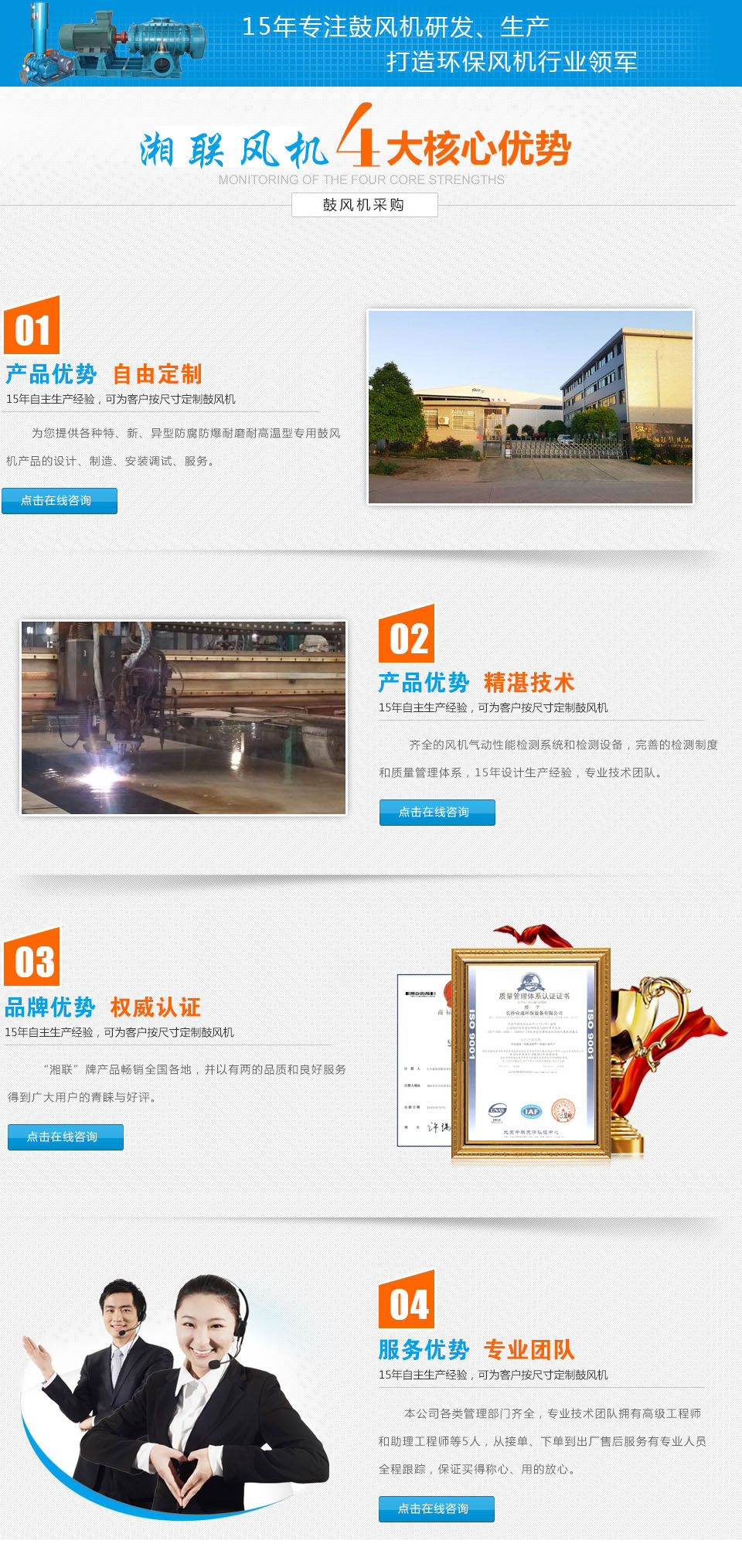 湘聯鼓風機是一家專業設計、生產和銷售各類鼓風機及通風除塵環保設備的專業長沙鼓風機廠。 公司占地2萬多平方,擁有各類主要加工檢測設備200余臺套。地處經濟交通信息發達的長沙市中心鎮——瀏陽鎮頭鎮,落戶瀏陽市環?萍际痉秷@的高科技環保型企業,是目前長沙市頗具規模、品種齊全的鼓風機及配件制造廠家之一。 現已生產三十多個系列通用型及十多個系列特種風機,廣泛應用于鋼鐵、冶煉、電力、化工、建材、窯爐..[更多詳情]